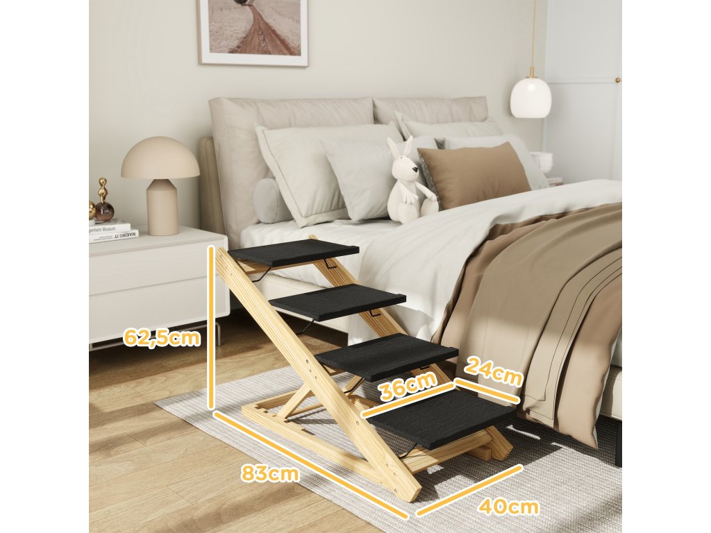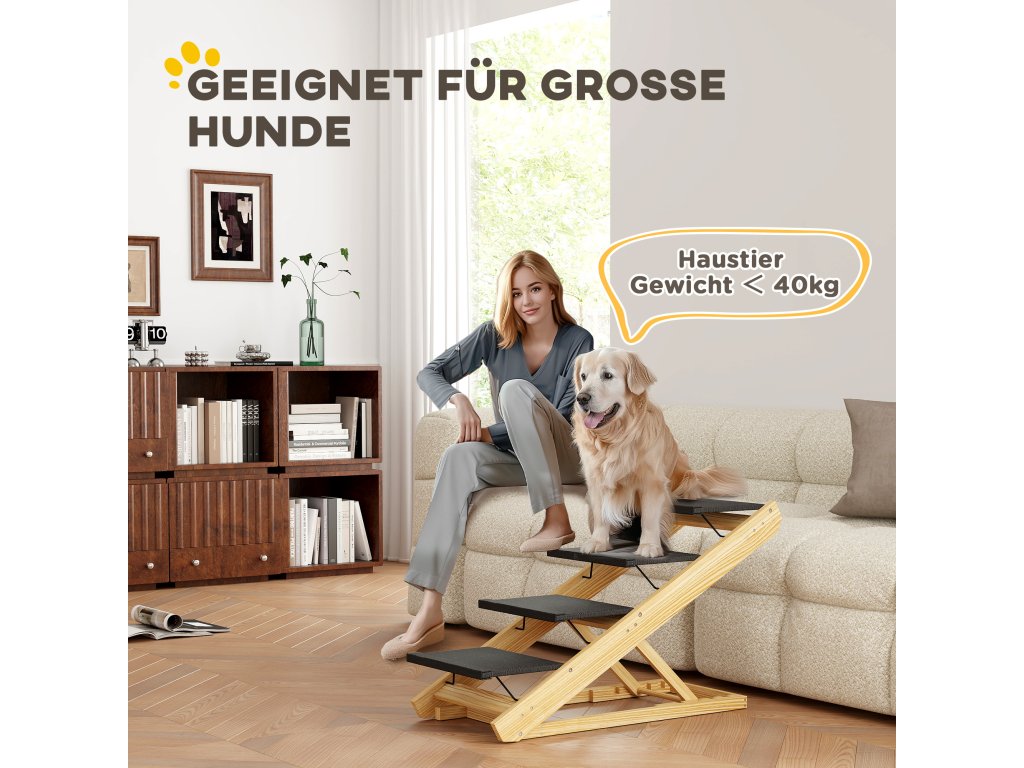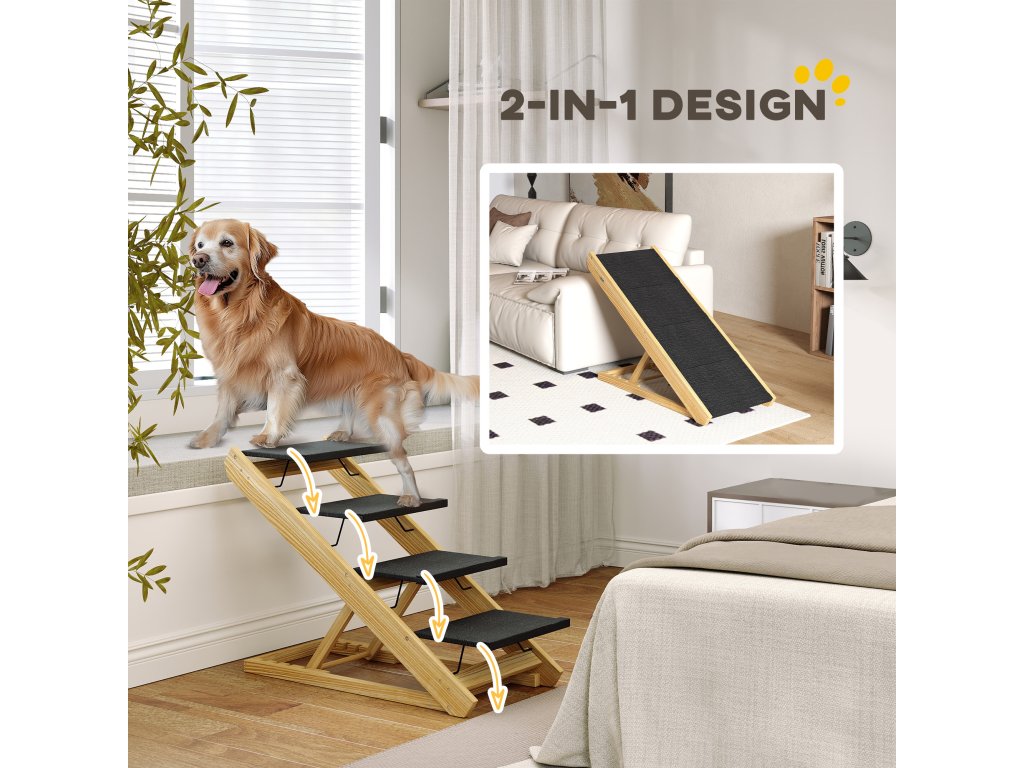 PawHut 2 v 1 schody pro psy 4 stupně 62,5 cm výškově nastavitelná skládací rampa pro psy s protiskluzovým povrchem na postel a pohovku | Aosom.de
