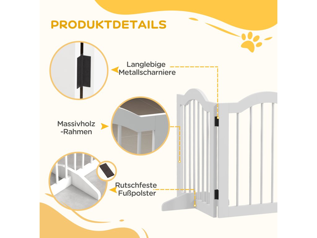 Zajistěte bezpečnost a ochranu pomocí zábrany pro psy PawHut. Ideální pro schody, vchody do domu nebo jako ohraničení místnosti - váš pes vždy zůstane v chráněném prostoru. Robustní nožičky bezpečnostní zábrany pro psy zaručují pevné uchycení, zatímco flexibilní spoje ji umožňují přizpůsobit jakémukoli dveřnímu otvoru. Chraňte svůj domov i svého čtyřnohého přítele pomocí této všestranné a robustní zábrany. Spolehněte se na PawHut pro bezpečnost svého domácího mazlíčka!