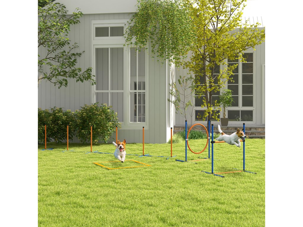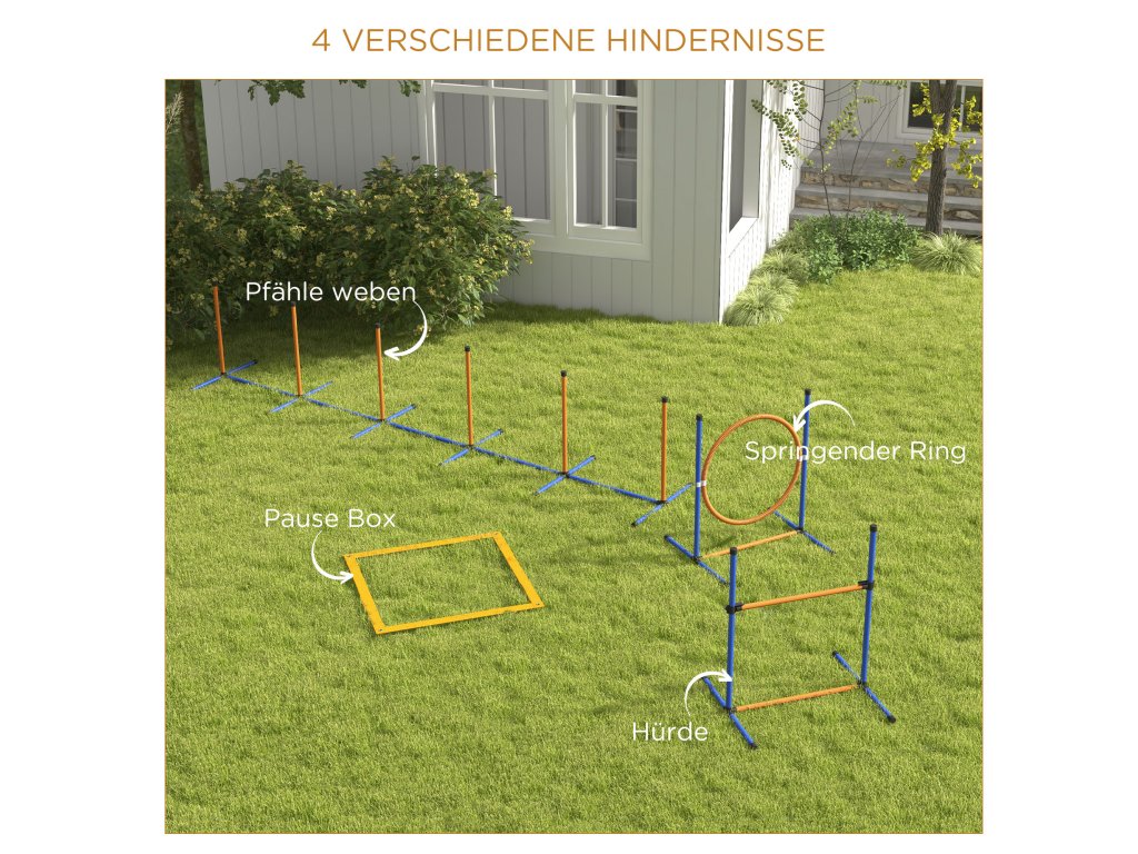 PawHut agility set pro psy se 4 výškově nastavitelnými agility překážkami, tyčemi, break boxem a skákacím kruhem pro efektivní výcvik psů | Aosom.de