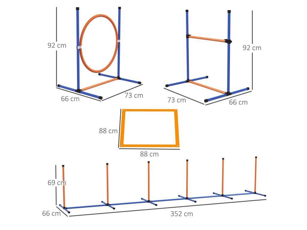 - Informace o výrobku Sada pro psy na hřiště: 73L x 66W x 92H cm. Slalomové tyče: 352L x 66W x 69H cm. Krabice na rozbití: 88L x 88W cm. Nutná montáž.