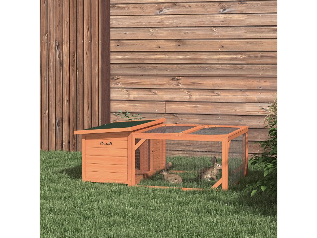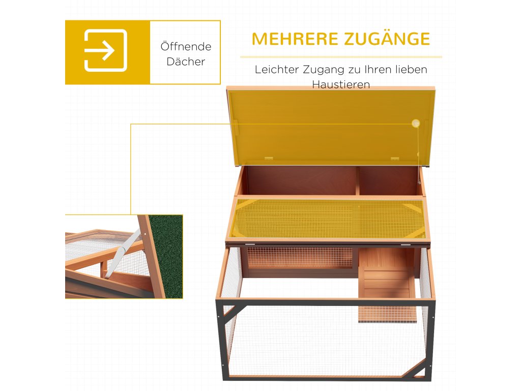 PawHut bouda pro malá zvířata králíkárna pro zakrslé králíky 1255x100x49cm s otevírací asfaltovou střechou odolná proti povětrnostním vlivům z jedlového dřeva v oranžové a zelené barvě | Aosom.de