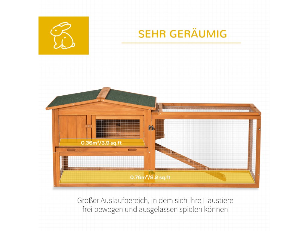 PawHut bouda pro malá zvířata z jedlového dřeva 156x58x68cm s asfaltovou střechou, venkovní domek pro malá zvířata, podlahová vanička a rampa, oranžová | Aosom.de