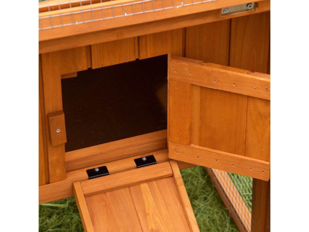 - Funkční vybavení: Díky četným detailům je bouda pro malá zvířata praktická a pohodlná, například odnímatelná podlahová vanička, dvoje dvířka, okénko ze síťoviny pro lepší pozorování atd.