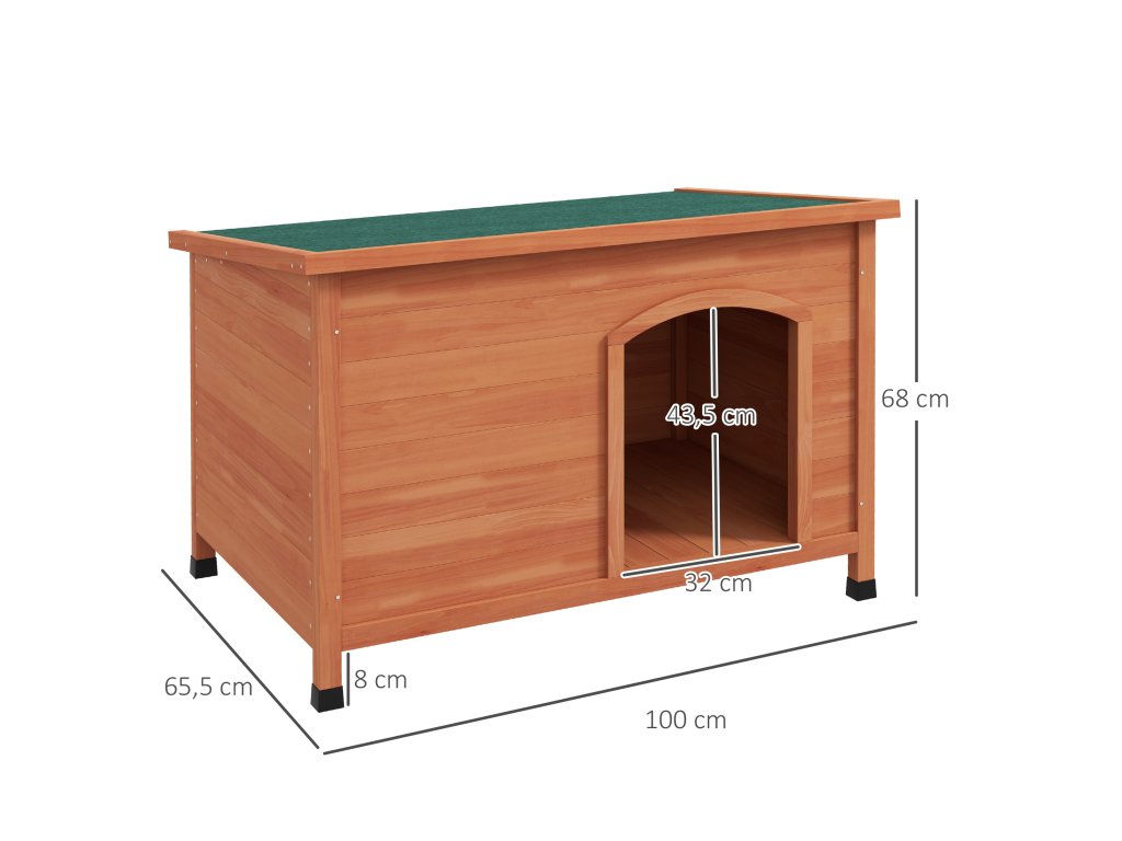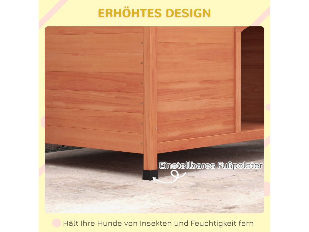 - Konstrukce z masivního dřeva: Díky výrobě z masivního smrkového dřeva a povrchové úpravě speciálním lakem si můžete být jisti, že se váš mazlíček bude v této psí boudě cítit jako doma