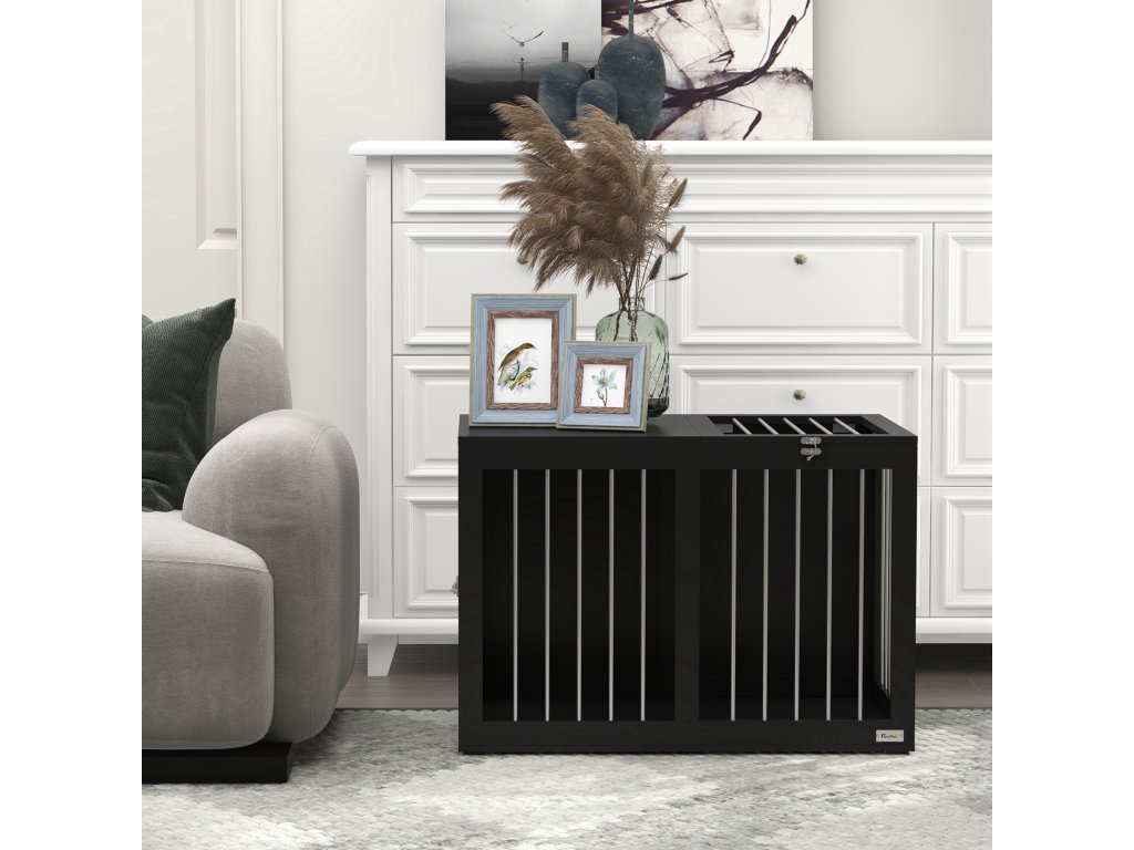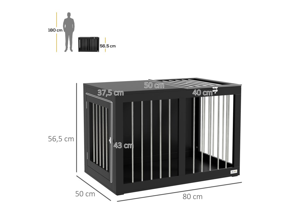 PawHut klec pro psa do domácnosti, psí bouda, klec pro středně velké psy, box pro psa s dvířky, psí bouda, přepravní klec, černá, 80 x 50 x 56,5 cm