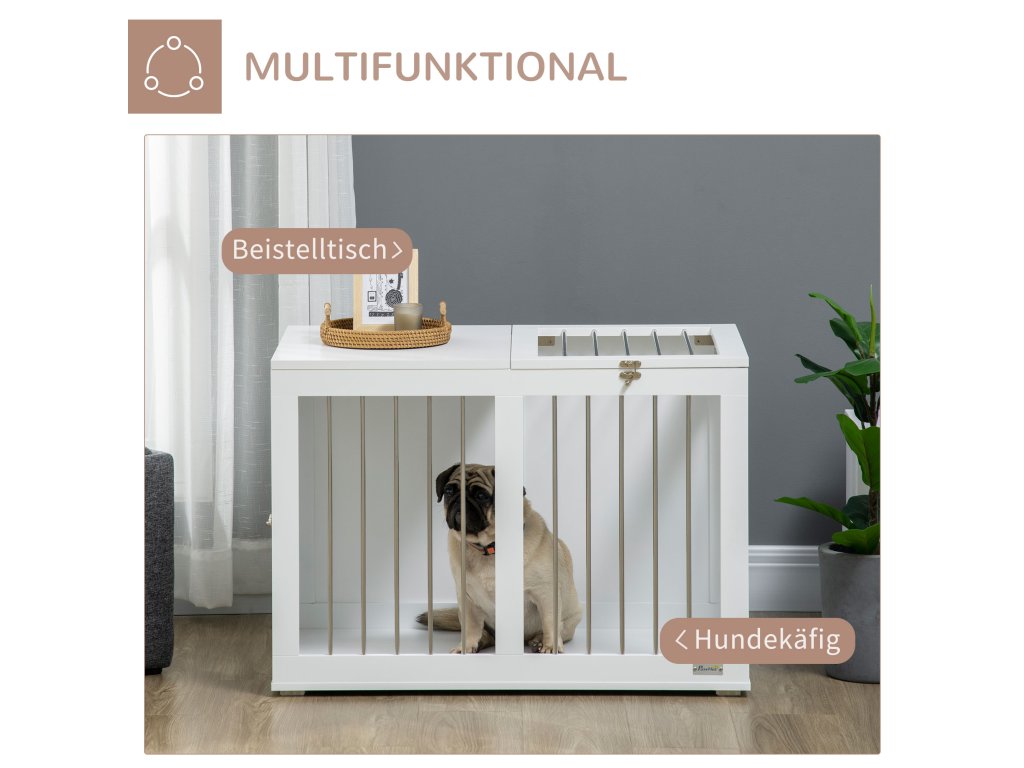 PawHut klec pro psy Klec pro střední psy 80 x 50 x 56,5 cm s dvířky a transportní funkcí v bílé barvě | Aosom.de