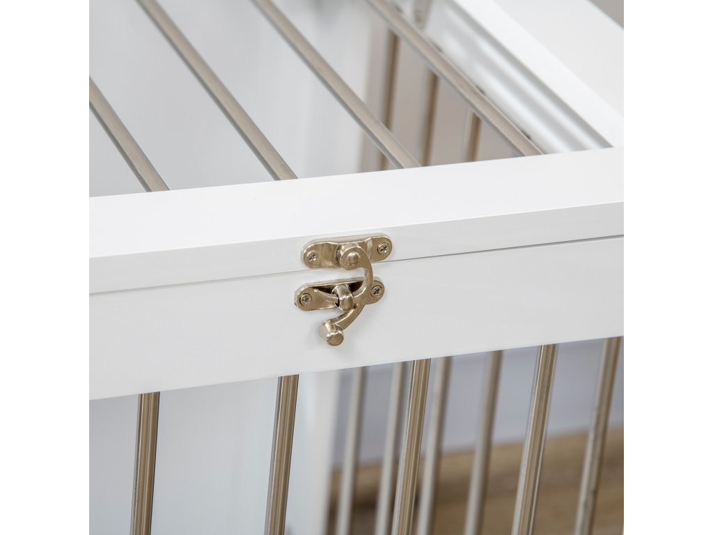 Tato moderní přepravka pro psy od společnosti PawHut nabízí vašemu psovi chráněné a bezpečné útočiště. Tato psí bouda je vyrobena z oceli a MDF a je vhodná pro středně velké psy. Horní a boční dvířka lze uzamknout a lze je použít pro krátkodobé ubytování. Moderní design se hodí k různým stylům vybavení.