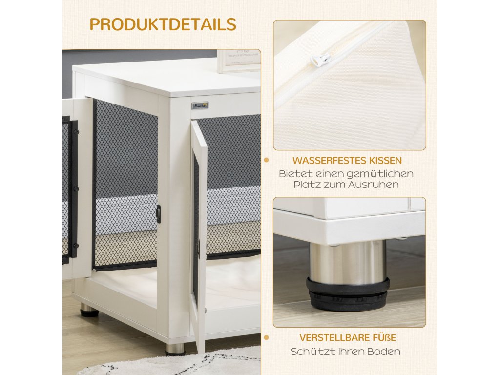 PawHut klec pro psy se stolkem, polštář, 2 dvířka, psí bouda, bouda pro psy, vnitřní box pro psy, boční stolek, bílá+černá, 94 x 60 x 71,5 cm | Aosom