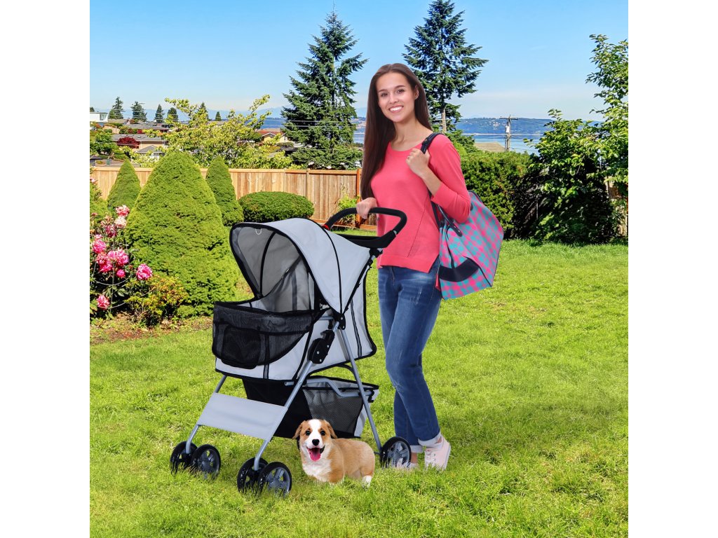 PawHut kočárek pro psy dog buggy stříbrný kočárek pro domácí mazlíčky jogger přívěs lehký skládací na cesty a cestování | Aosom.de