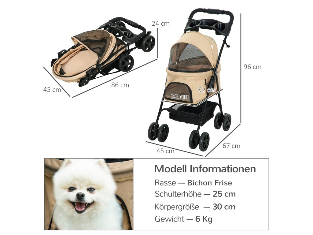- Údaje o výrobku: 67L x 45W x 96H cm. Vnitřní rozměry: 52L x 32W x 48H cm. Úložný koš: 36L x 25W x 12H cm Poznámka: Vhodné pro malé psy s délkou těla do 32 cm a hmotností do 4 kg.