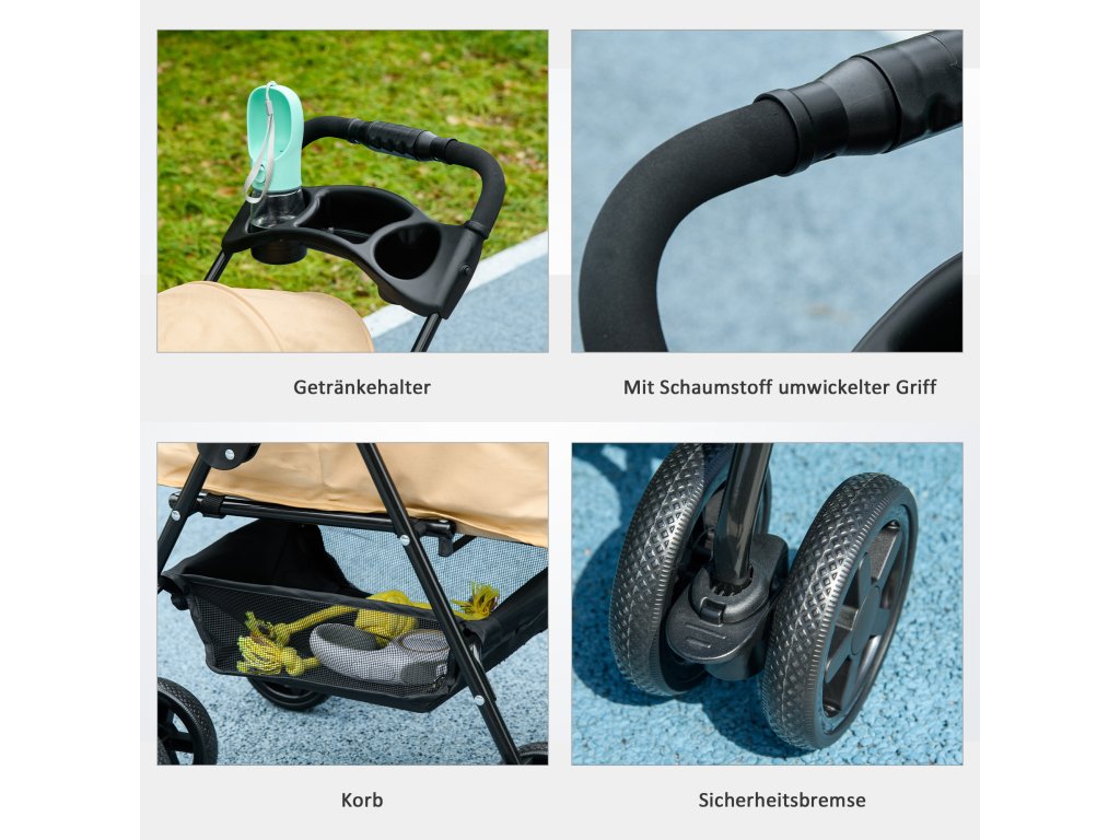PawHut kočárek pro psy kočárek pro psy skládací funkční kočárek pro malé psy kočky kočárek pro domácí mazlíčky Oxford Khaki 67x45x96cm |