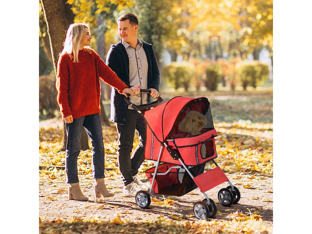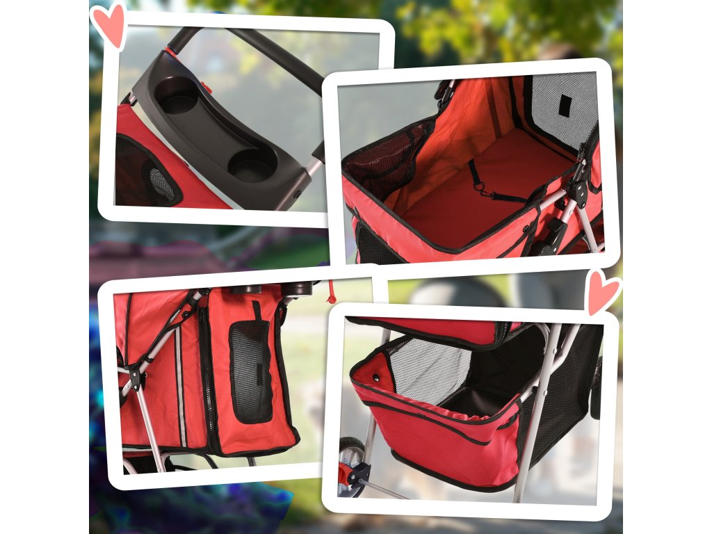 PawHut kočárek pro psy v červené barvě, kočárek pro psy, lehký a skládací| Aosom