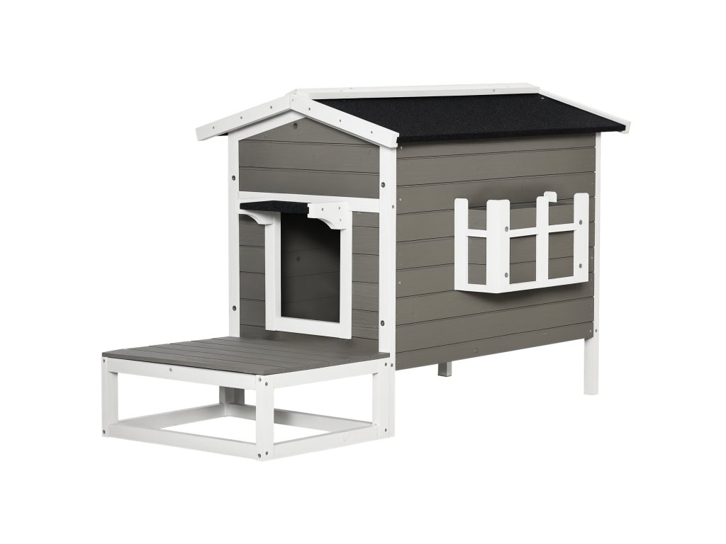 - Stylová vila pro kočky: Domek pro kočky se skládá z přívětivého domečku, malého balkonu a terasy v přední části. Klasický šedobílý vzhled je elegantní a hodí se do každého stylu.
