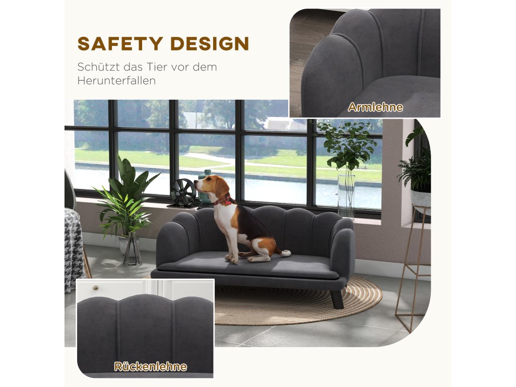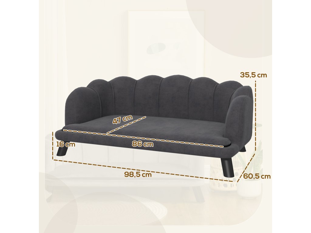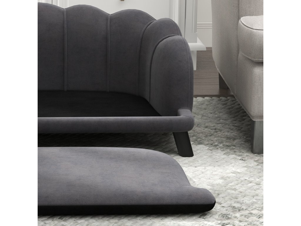 PawHut luxusní pohovka pro psy s dřevěnou opěrkou zad tmavě šedá 98,5x60,5x35,5cm | Aosom