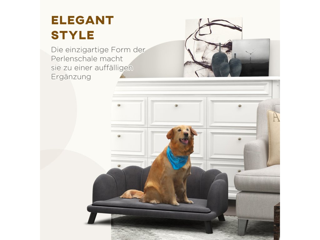 - Elegantní design: Pohovka pro psy zaujme stylovým tvarem perleťové mušle na zadní straně a bude ozdobou vaší domácnosti. Je ideální pro střední a velké psy do 25 kg a dokonale zapadne do každého interiéru.