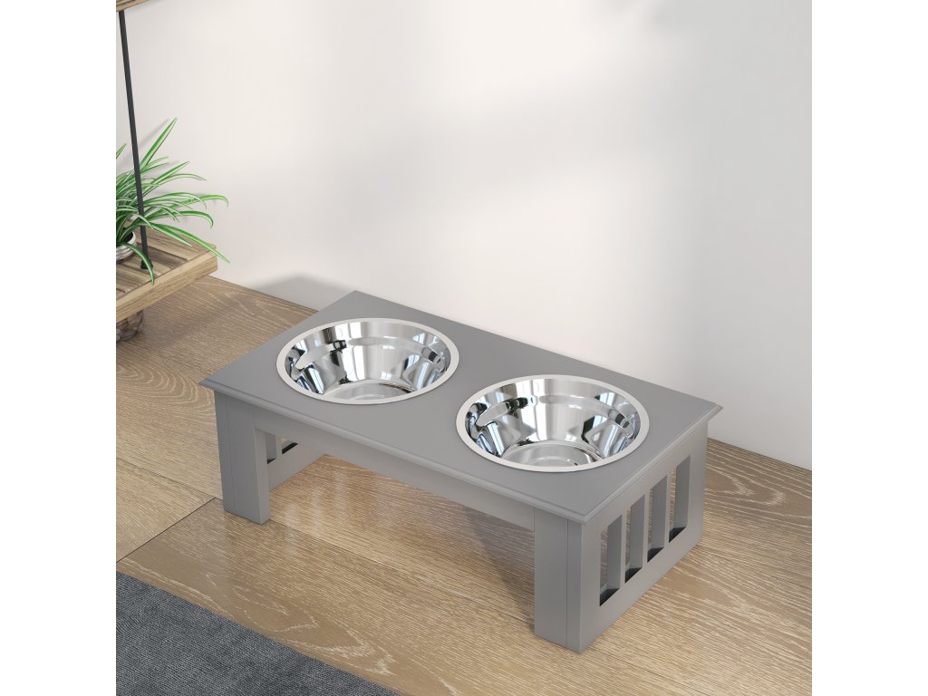 PawHut miska pro psy se 2 miskami 0,9 l vyvýšená miska na krmivo pro kočky snadná údržba nerezová ocel šedá 44 x 24 x 15 cm | Aosom.de