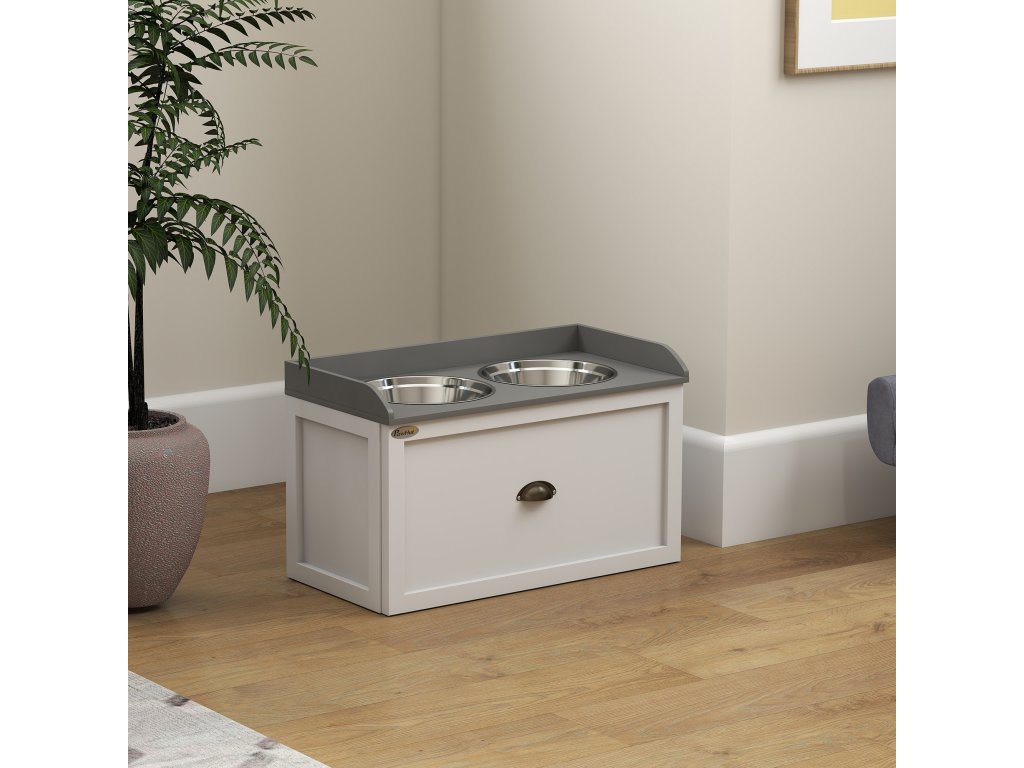 Čím více úložného prostoru máte, tím více zábavy můžete svému čtyřnohému příteli nabídnout. Do této velké zásuvky se vejdou žvýkací hračky, pamlsky, provazy a mnoho dalšího, což vám umožní minimalizovat prostor ve skříních a policích a místo toho uložit věci pod misky na jídlo a vodu. Vyvýšený držák misek od PawHut pro velké psy poskytuje ideální úhel sklonu.