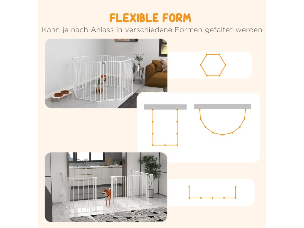 - Flexibilní konstrukce: Tento výběh pro štěňata se skládá z osmi panelů s flexibilními klouby, které umožňují skládat jej do různých tvarů, jako je osmiúhelník, obdélník, čtverec, tvar písmene L, U nebo W. Díky této praktické funkci můžete výběh snadno přizpůsobit uspořádání místnosti. A pokud ji právě nepotřebujete, můžete ji jednoduše složit a uložit pod postel nebo do skříně