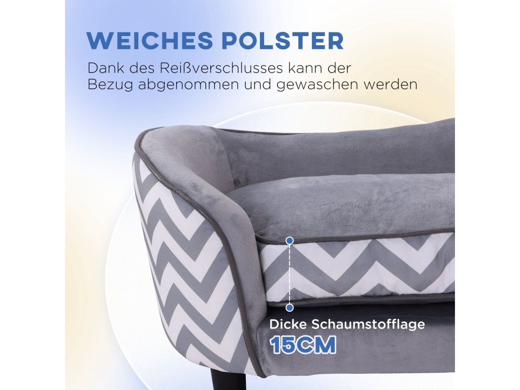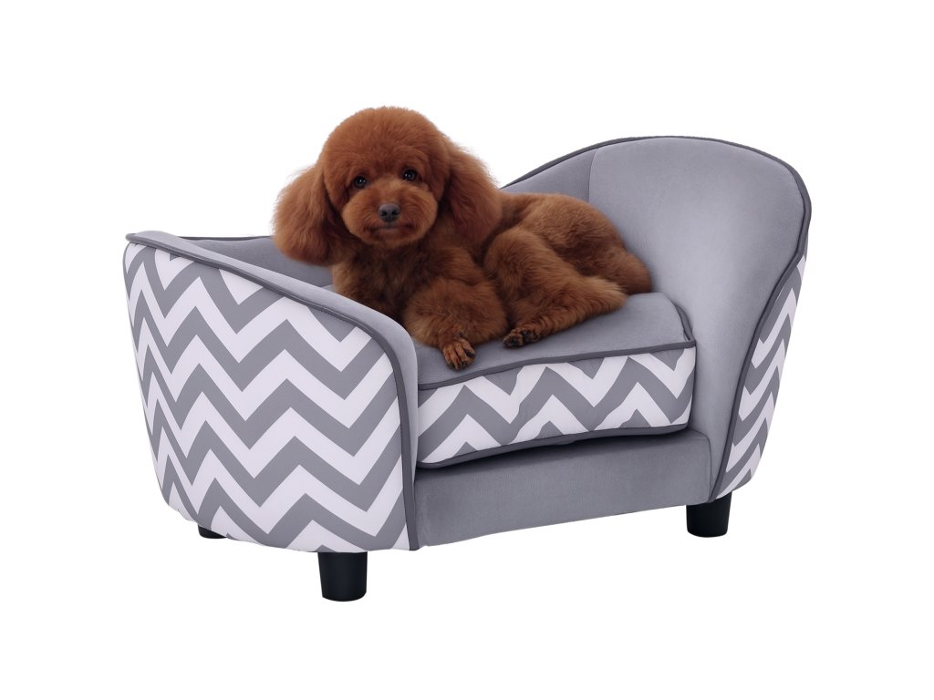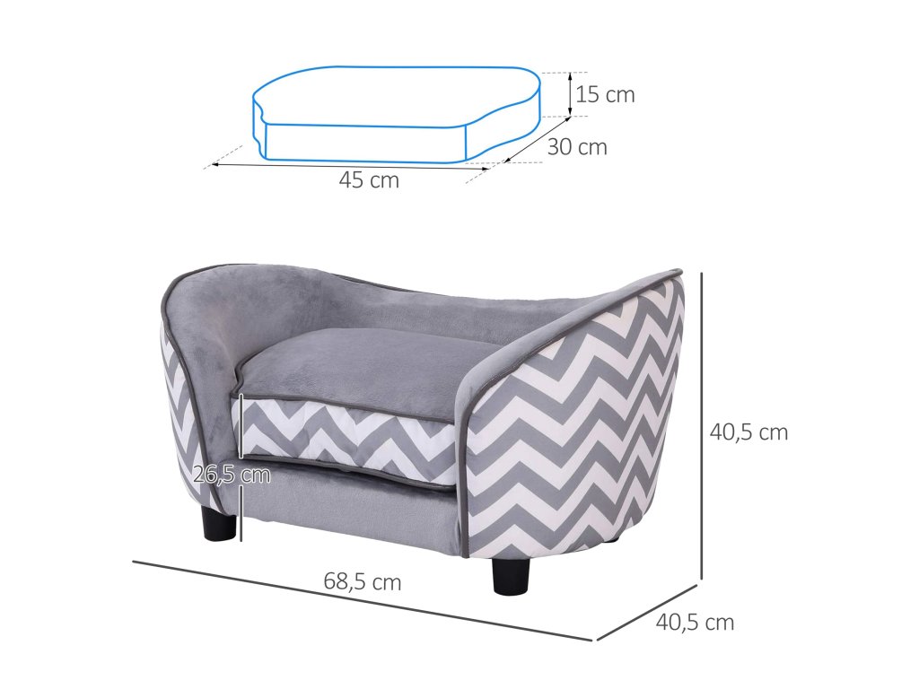 PawHut pet sofa pohovka pro psy čalouněná dřevem a pěnou 68,5x40,5x40,5cm pro psy a kočky v šedé barvě | Aosom.de