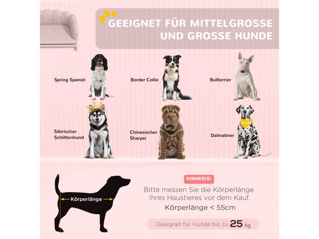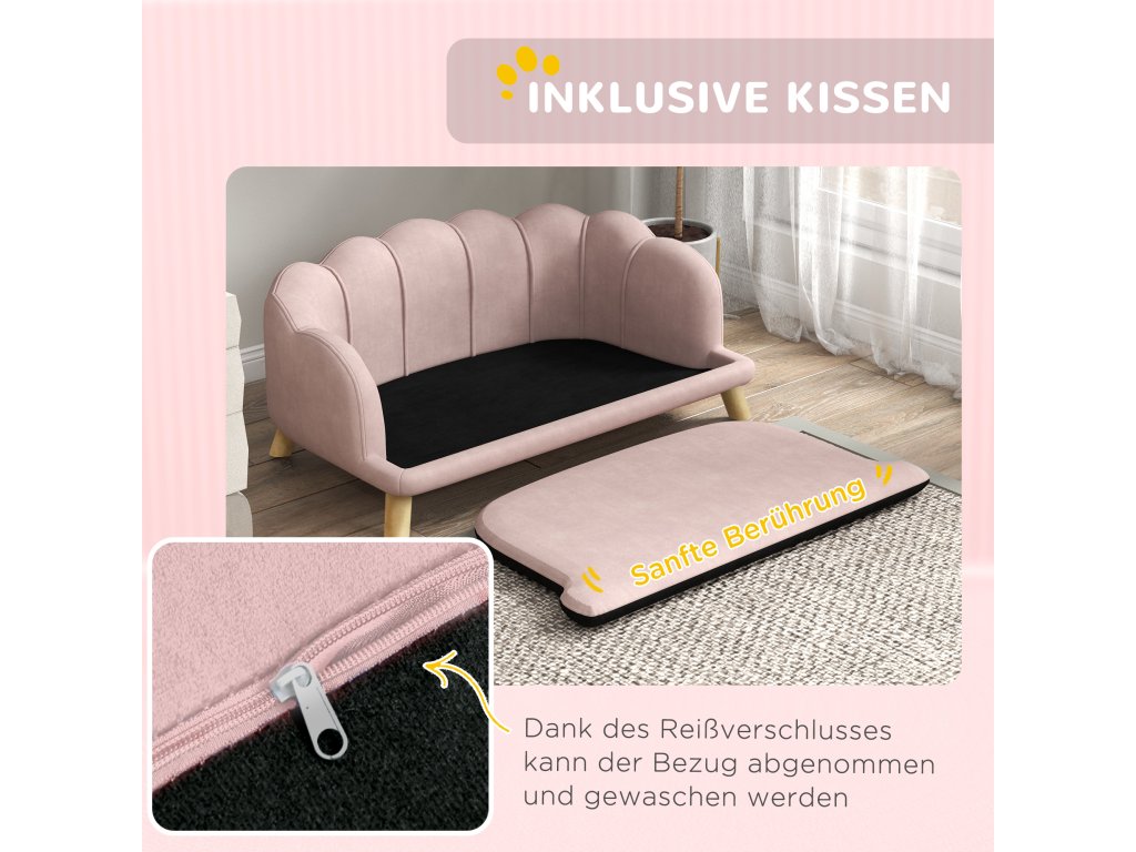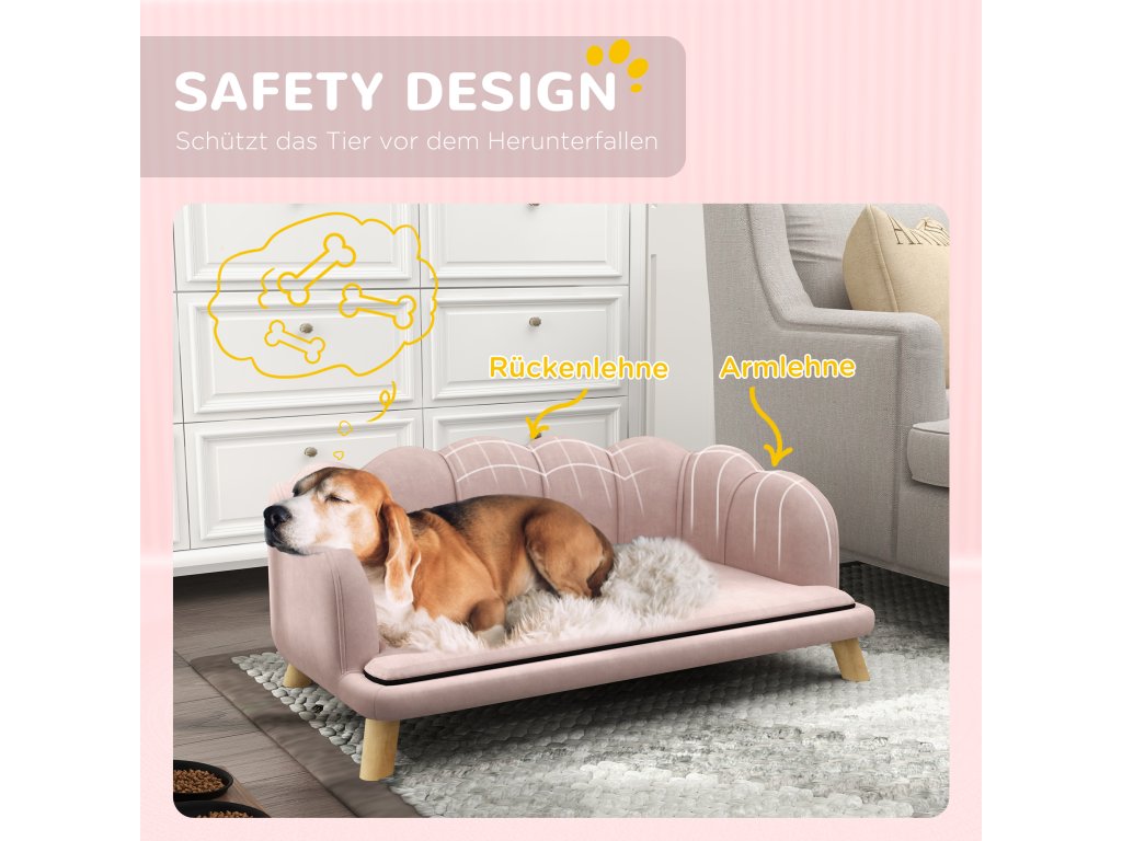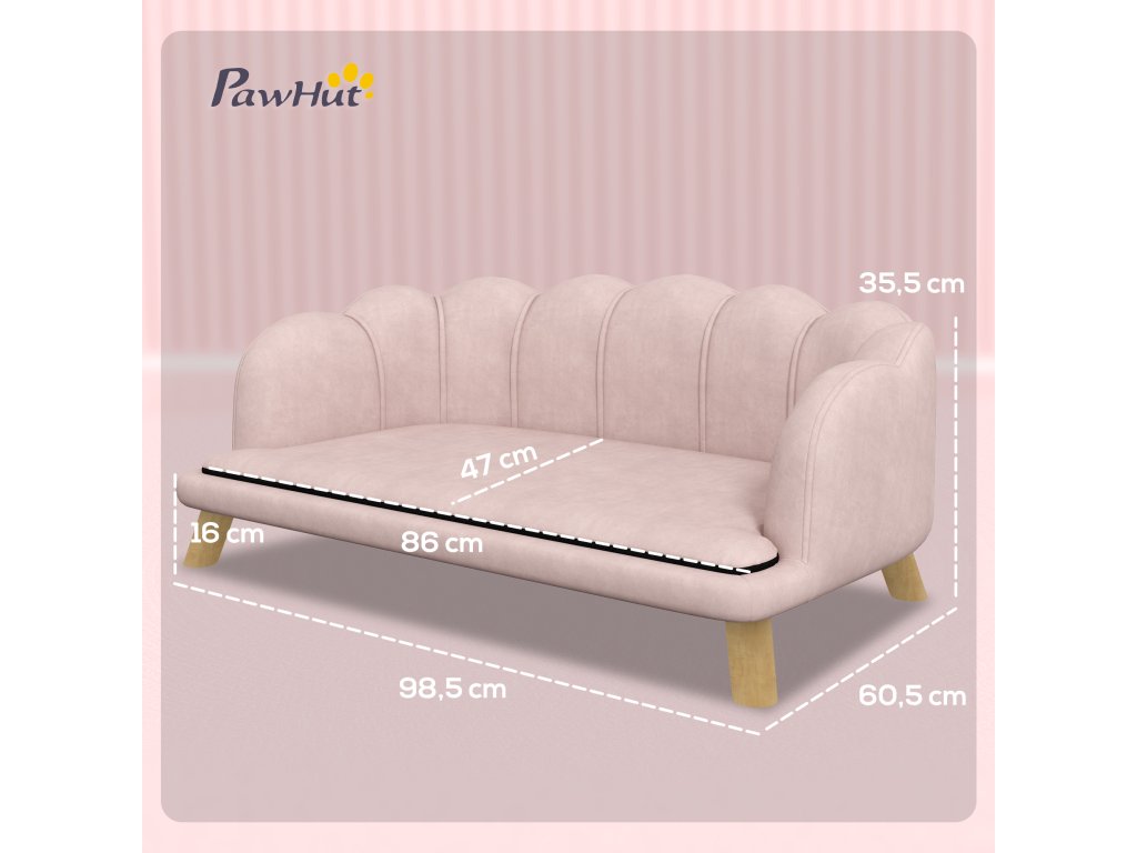 PawHut pohovka pro psy, pratelný potah, pohovka pro domácí mazlíčky s opěradlem a dřevěnými nohami, pohovka pro kočky, pro střední psy do 25 kg, růžová | Aosom