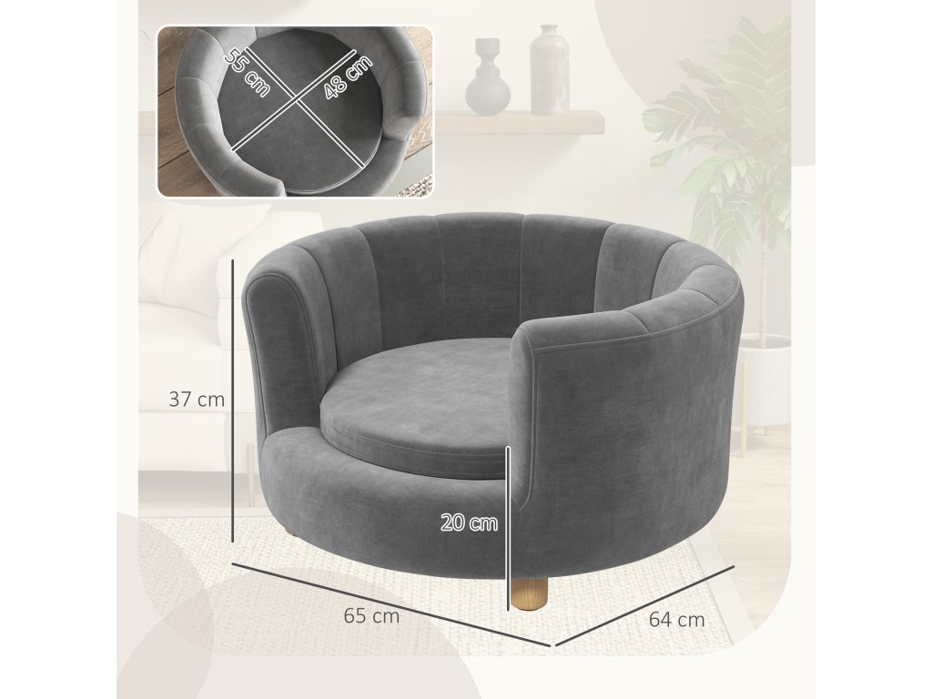 PawHut pohovka pro psy Omyvatelná pohovka s opěradlem a dřevěnými nohami pro malé psy do 45 kg v šedé barvě | Aosom.de
