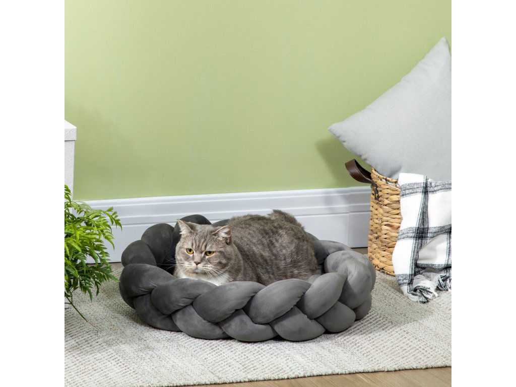 PawHut pohovka pro psy pratelná v pračce včetně polštáře kulatý pelíšek pro kočky 55 cm x 55 cm x 14 cm pro malé psy sametová na dotek šedá | Aosom.de