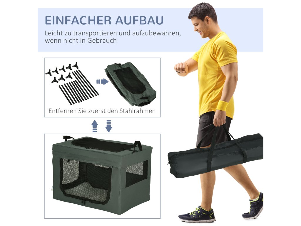 - Praktické pro pány a paničky: Ocelový rám lze odejmout, takže přepravku lze uložit a ušetřit tak místo. Dvě madla po stranách usnadňují přenášení přepravky v případě potřeby