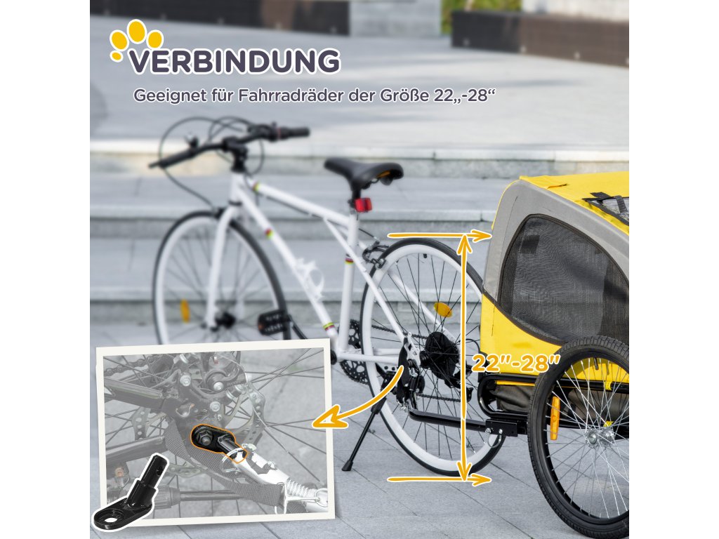 PawHut přívěs pro psa, nosnost 20kg, pro střední psy, s okny ze síťoviny, bezpečnostní vodítko, 140x71x83cm, Oxford tkanina, žlutá | Aosom