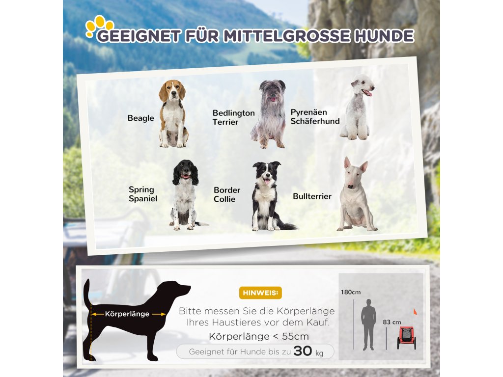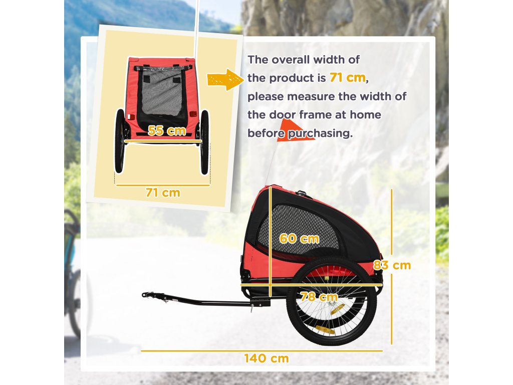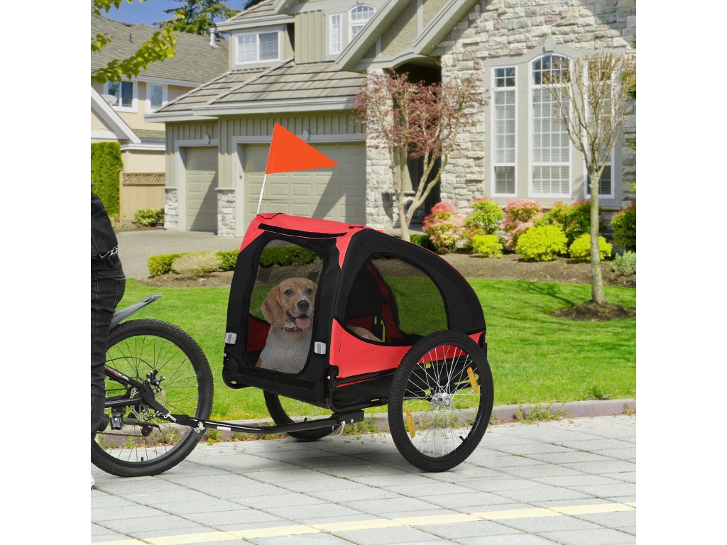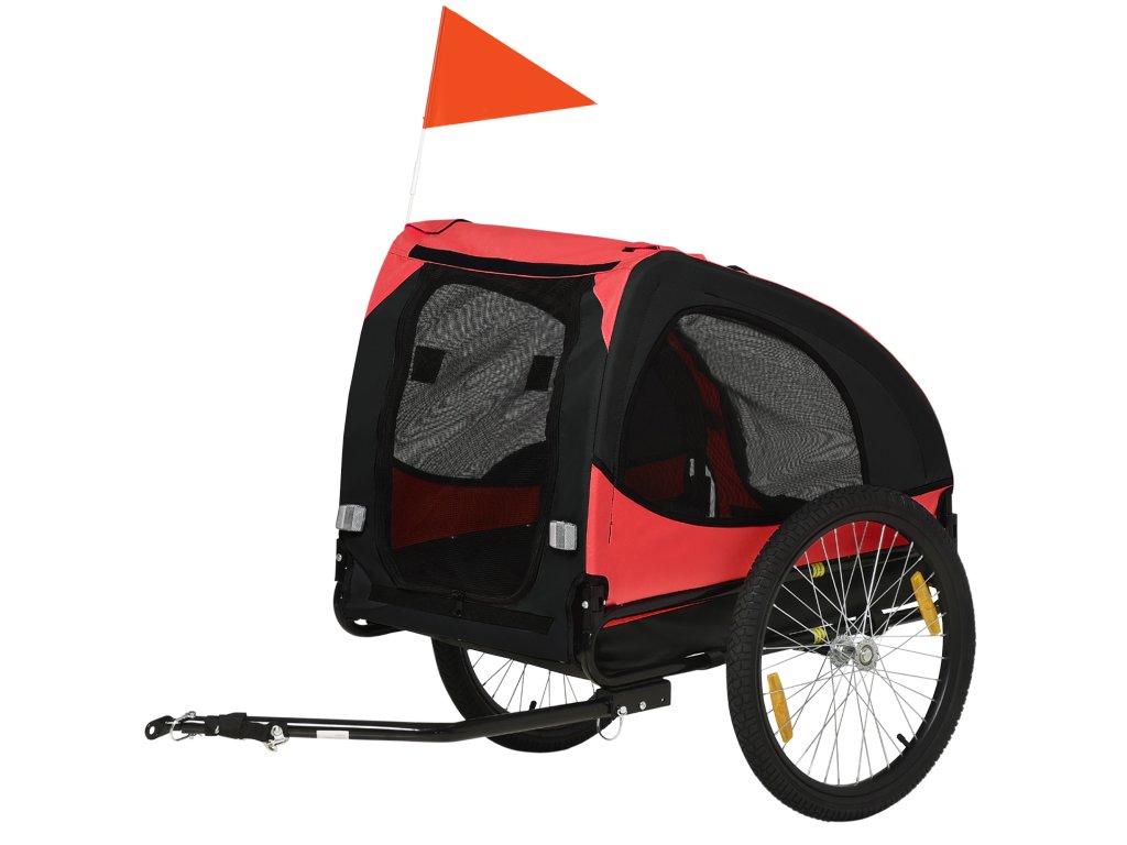 PawHut přívěs pro psy, skládací přívěs na kolo pro psy, kočárek pro psy s odrazkami, rychloupínací, přívěs na kolo pro psy, voděodolný, tkanina Oxford, ocel, červený, 140 x 71 x 83 cm
