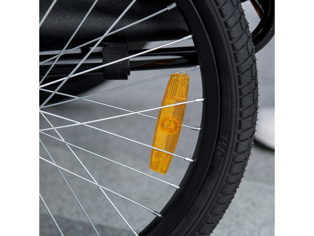 S tímto praktickým přívěsem pro psy od společnosti PawHut můžete vyrazit na dobrodružství se svým mazlíčkem! Dvoje dveře na zip umožňují nastupování a vystupování, zatímco síťovaná okna zajišťují, že si váš mazlíček může během cesty užívat svěžího vánku a výhledu. Přídavné odrazky a červená vlajka jsou dobře viditelné v provozu i v noci. Díky rychle odnímatelným kolečkům lze přívěs také snadno demontovat a uskladnit.
