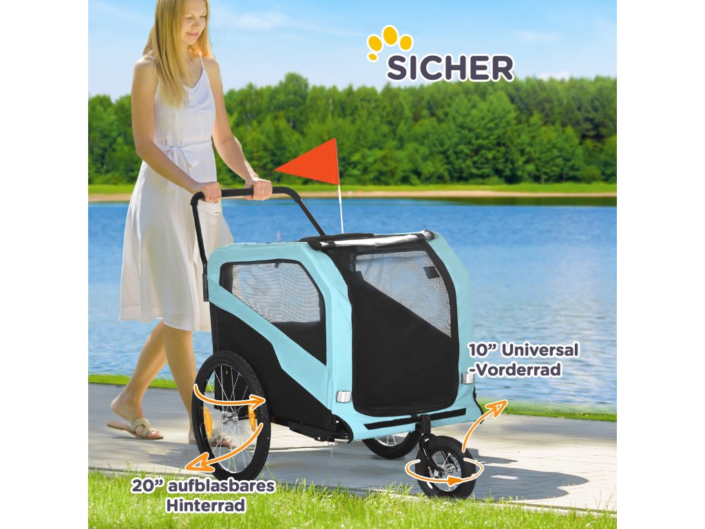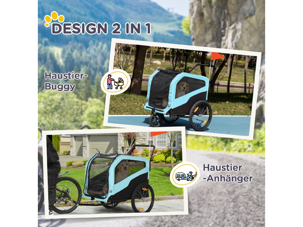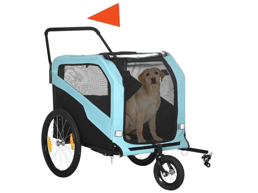 PawHut přívěs pro psy 2 v 1, přívěs na kolo pro psy, kočárek pro psy s odrazkami, kočárek pro psy max. 30 kg, Oxford tkanina, modrá | Aosom