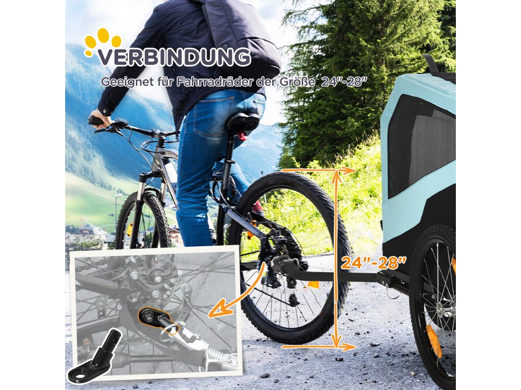 - ✔ Přívěs lze připevnit ke kolu pomocí dodávaného tažného zařízení