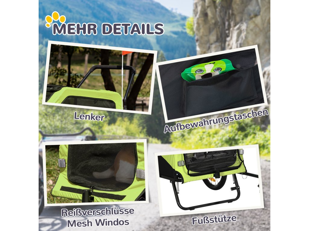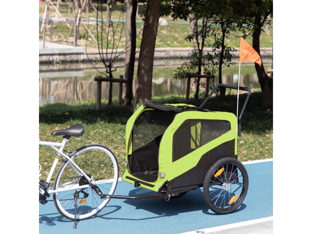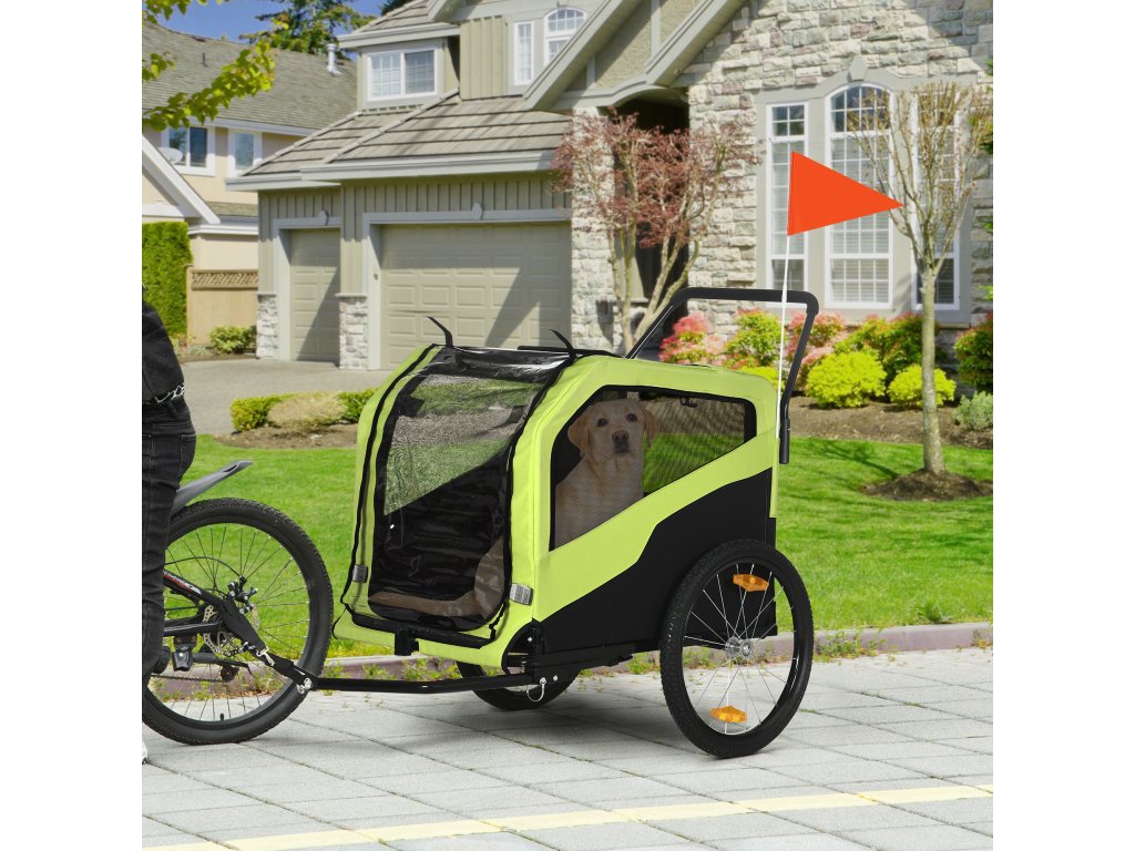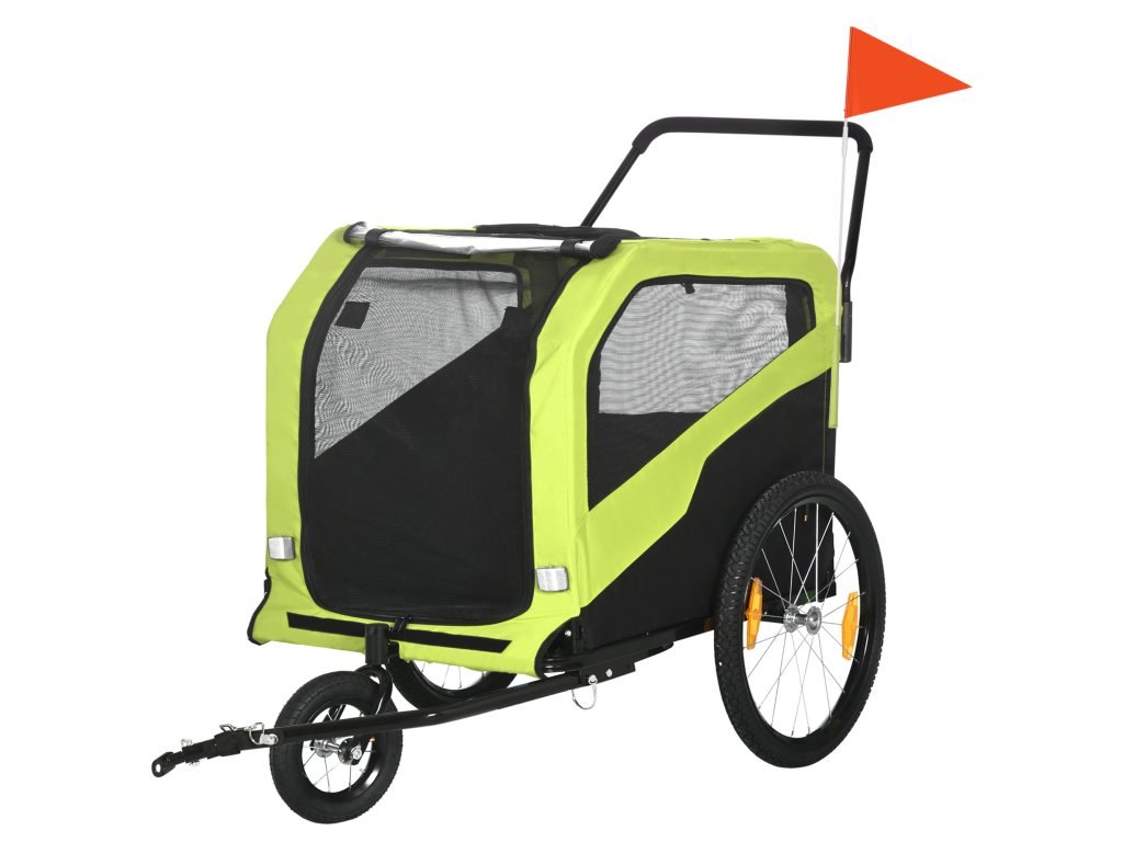 PawHut přívěs pro psy 2 v 1, přívěs na kolo pro psy, kočárek pro psy s odrazkami, kočárek pro psy max. 30 kg, přívěs na kolo pro velké psy, tkanina Oxford, zelený