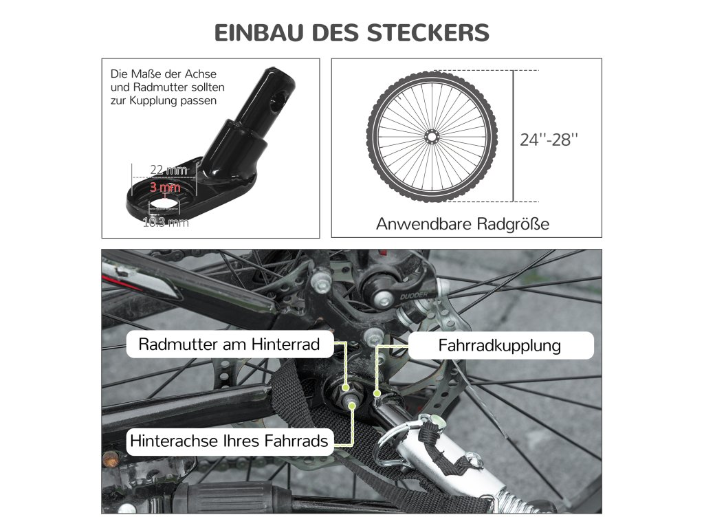 - ✔ Součástí je spojka přívěsu pro připevnění ke kolu