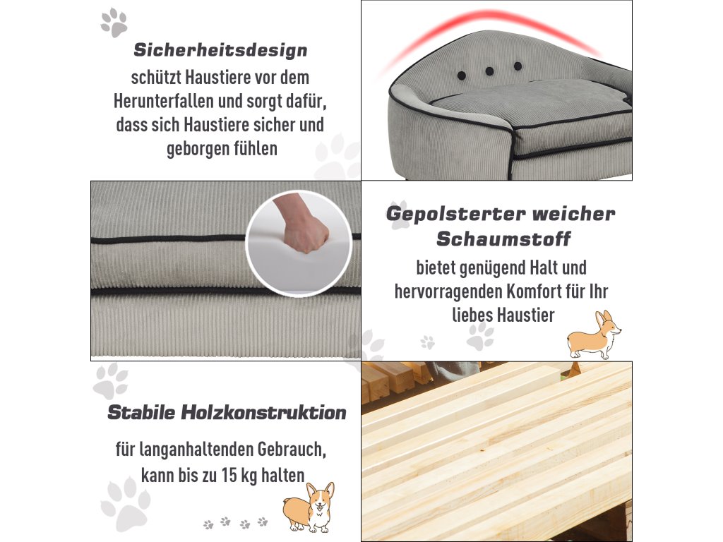 PawHut psí pohovka Útulný pelíšek z přírodního dřeva a plyše pro malé psy a kočky 66,5 x 45 x 35,5 cm šedá | Aosom.de