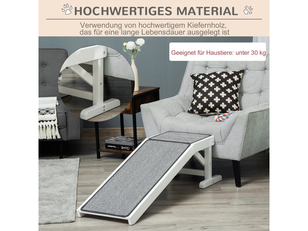 - KVALITNÍ MATERIÁL: Vyrobeno z kvalitního borovicového dřeva pro pevnou konstrukci, která zajistí vašemu psovi bezpečí při používání rampy pro psy.