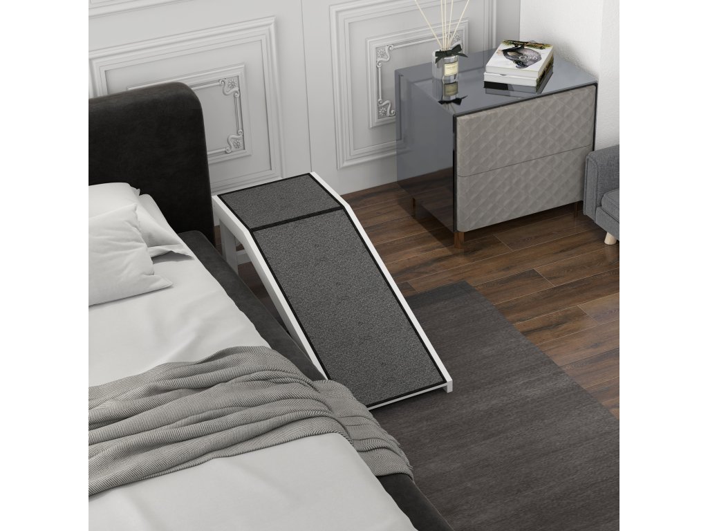 PawHut Rampa pro psy s protiskluzovým kobercem Žebřík pro psy Rampa pro psy do 30 kg Borovicové dřevo Polyester Bílá+Šedá 125 x 40 x 35,5 cm | Aosom