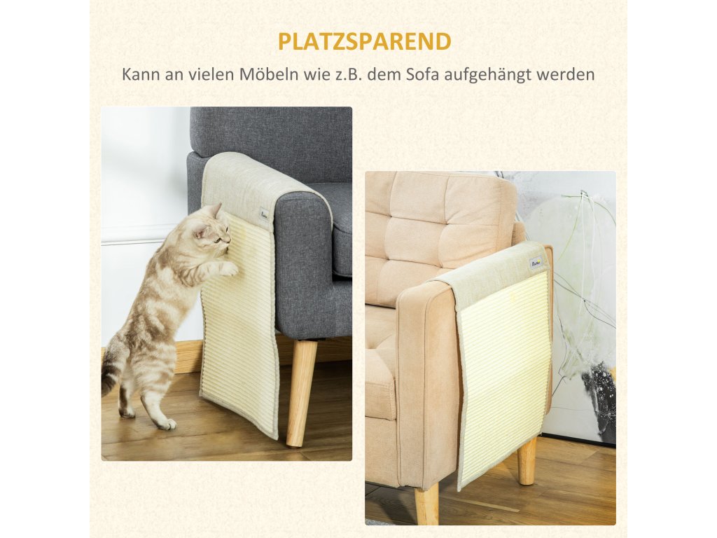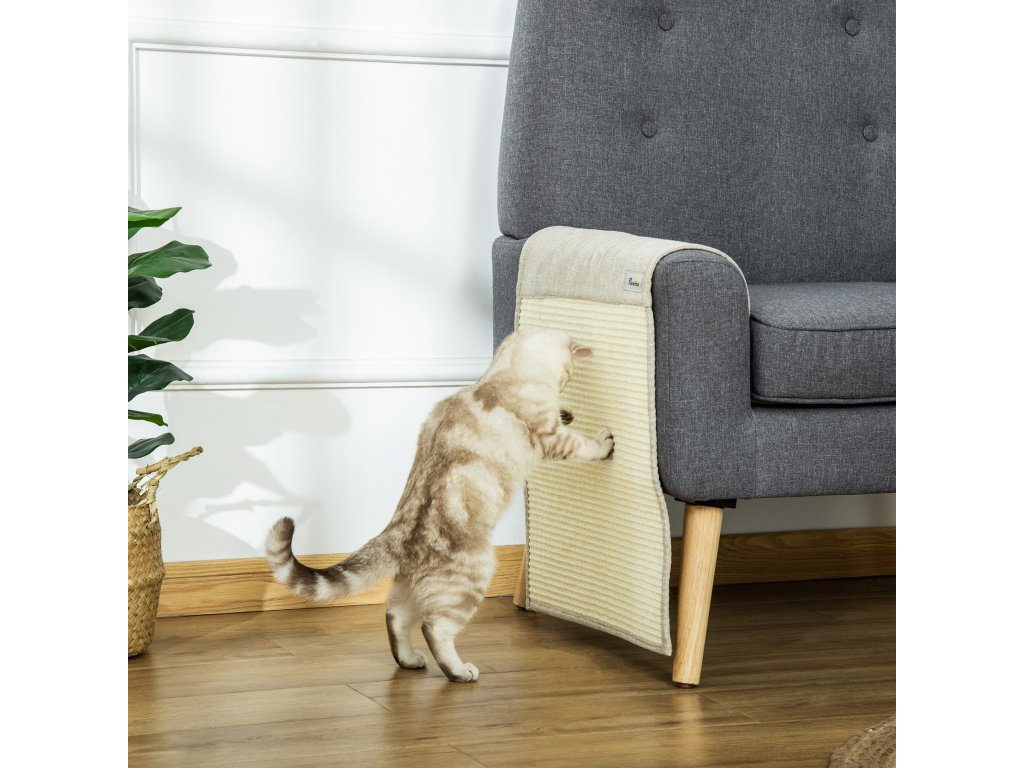 PawHut sada 2 škrabadel na pohovku pro kočky, sisalový škrabací koberec, béžová+šedá, 130x45x0,3cm, na křeslo a pohovku| Aosom