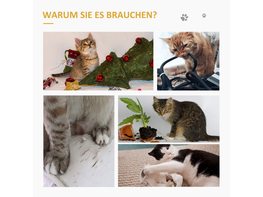 Chcete výrobek, který upoutá pozornost vašeho chlupatého přítele a zároveň ochrání váš nábytek před jeho ostrými drápy? Pak je tato sada škrabacích rohoží od PawHut přesně pro vás. Má elegantní design a lze ji zavěsit na nábytek, například na pohovku, čímž ušetříte spoustu místa. Škrábací karton stimuluje kočičí instinkty a zvědavost a zároveň pomáhá chránit váš nábytek před poškrábáním.
