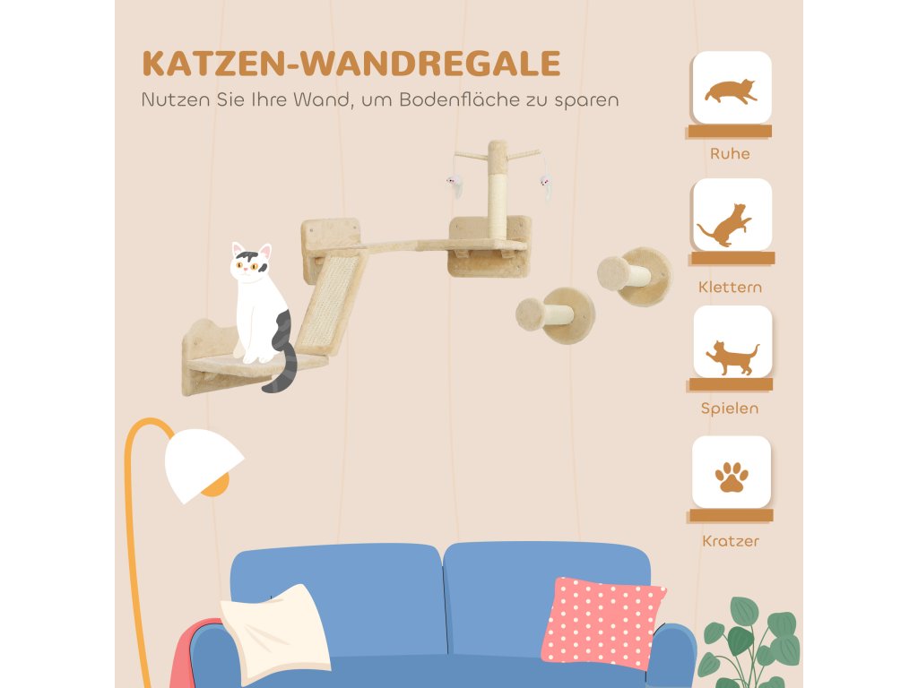 - Vhodné pro dekorace: Sada lezecké stěny pro kočky se harmonicky začlení do každého interiéru a podpoří přirozené instinkty vaší kočky ke šplhání