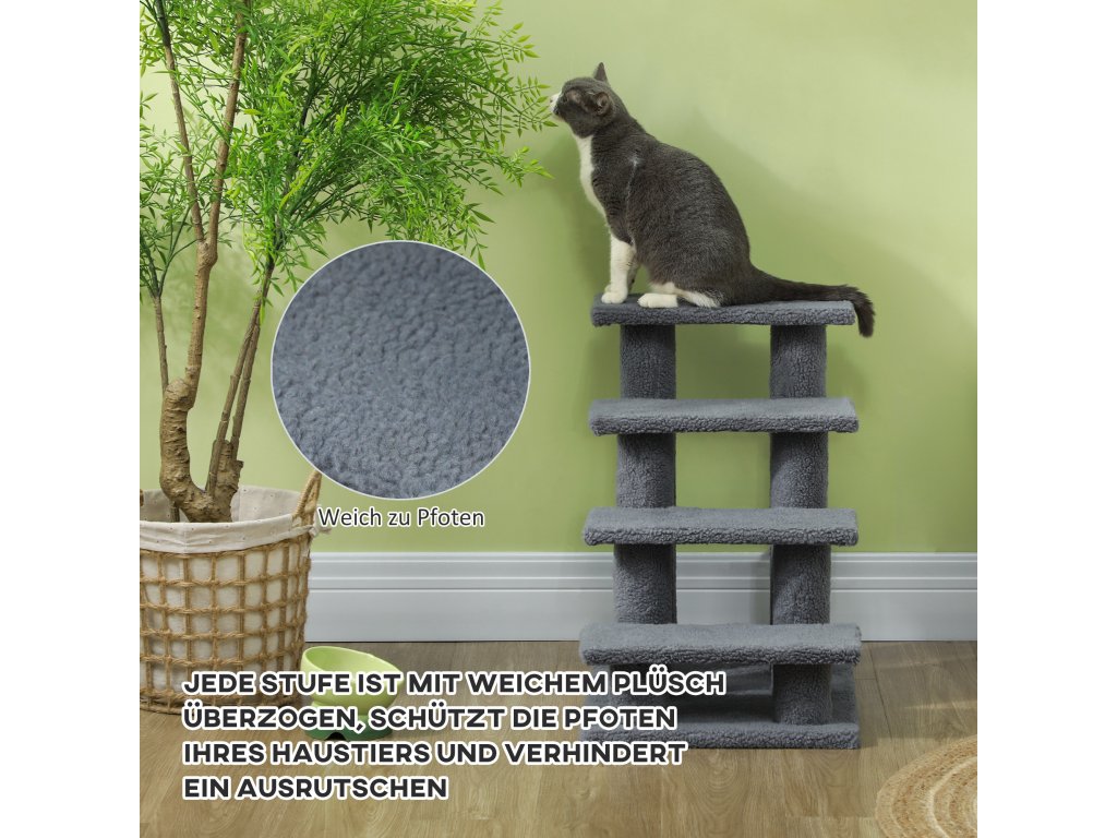 PawHut schodiště pro zvířata schodiště pro kočky schodiště pro psy 4 stupně šedé 63,5x43x60cm pro kočky a psy, ideální pro seniory a malá zvířata | Aosom.de