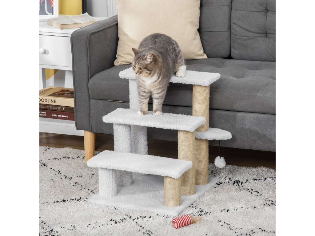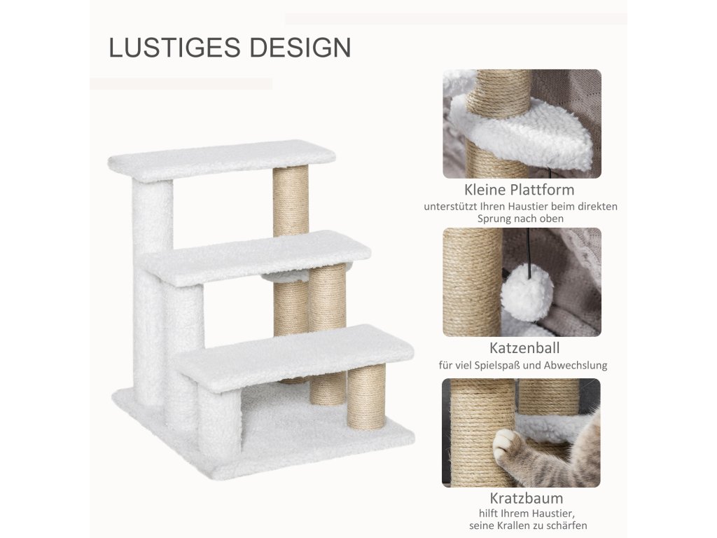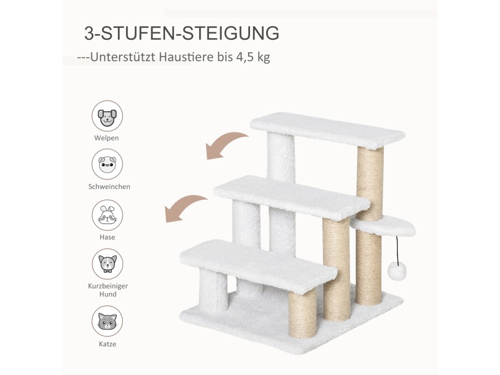 PawHut schody pro domácí mazlíčky se škrabadlem 3stupňové schody pro kočky schody pro psy schody pro domácí mazlíčky schody z dřevotřísky plyšové juty bílé 45x40x48 cm pro kočky a psy | Aosom.de