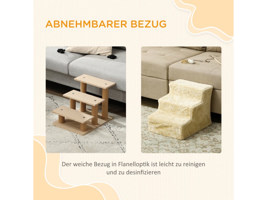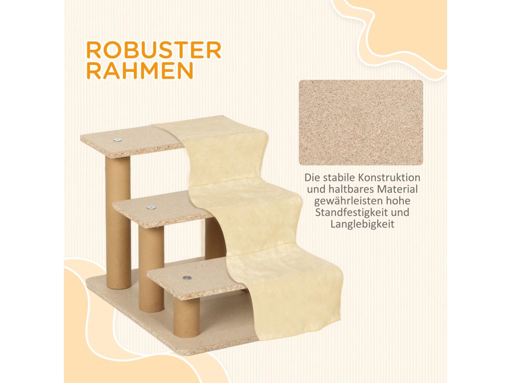 PawHut schody pro psy 3 stupně 35 cm schody pro domácí mazlíčky s plyšovým vzhledem, schody pro kočky do postele, na pohovku, pro kočky do 4,5 kg, béžové | Aosom