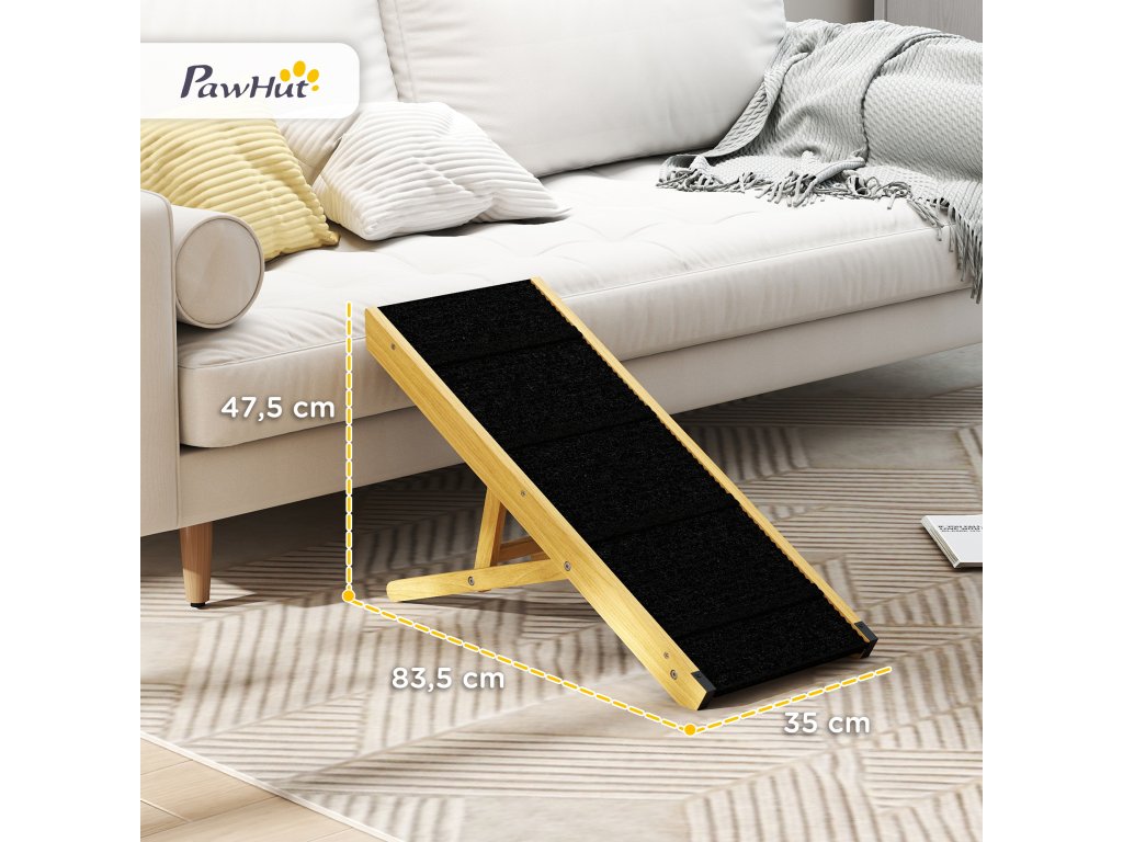 PawHut Skládací rampa pro psy, výškově nastavitelná rampa pro domácí mazlíčky, protiskluzová pomůcka pro malé a střední psy do 15 kg, 83,5 x 35 x 47,5 cm, přírodní | Aosom