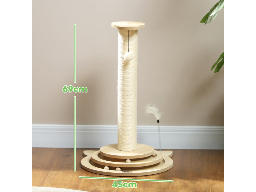 PawHut škrabadlo 4 v 1, 69cm škrabadlo, sisalové škrabadlo pro kočky s míčkem na hraní, škrabadlo pro kočky, kočičí škrabadlo, vnitřní, dub | Aosom
