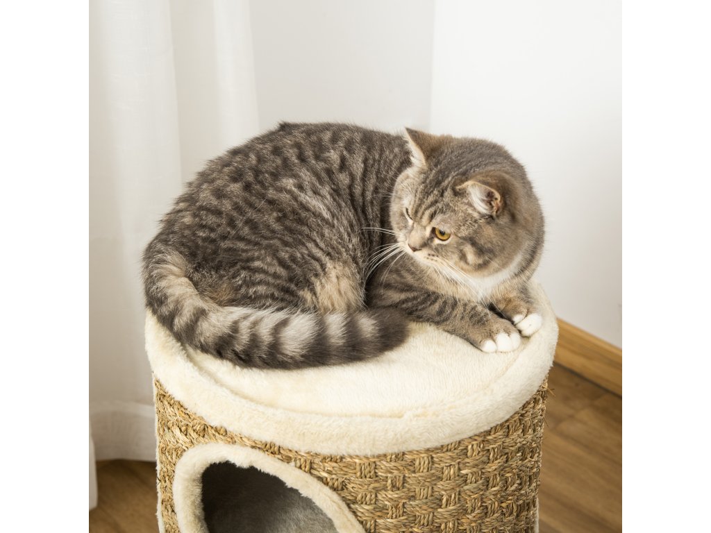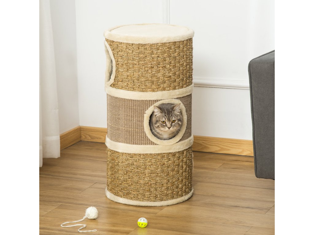 Tento barel od PawHut, potažený sisalem a provazem z mořských řas, si vaše kočka určitě oblíbí. Poskytuje fantastické místo na hraní, spaní i úkryt. Uvnitř jsou dvě jeskyně propojené velkým otvorem, což jim poskytuje dvakrát více prostoru pro pohyb a úkryt. Horní patro je pokryto měkkým a příjemným materiálem pro pohodlí při spánku.
