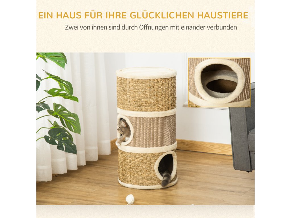 PawHut škrabadlo pro kočky 3 úrovně se sisalem a plyšem 37,5x37,5x70cm ideální pro milovníky koček | Aosom.de
