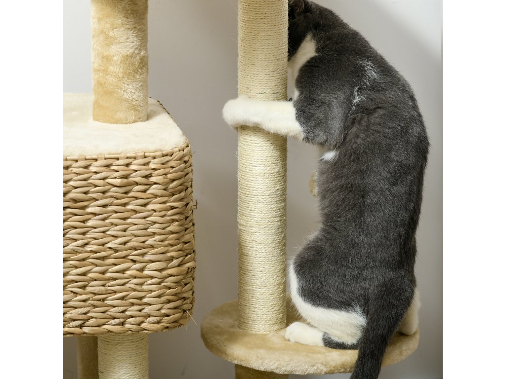 PawHut škrabadlo pro kočky 98 cm strom pro kočky se 2 opěrnými plochami, škrabadlo pro kočky s míčem pro kočky do 6 kg, nábytek pro kočky, sisal, béžová | Aosom