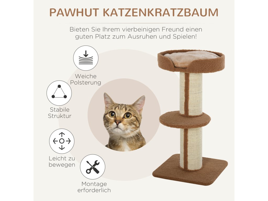 PawHut škrabadlo s odnímatelným polštářem, do 30 kg, škrabadlo, kočičí strom s plošinou, stabilní, sisal, světle hnědá, 45x45x91cm| Aosom