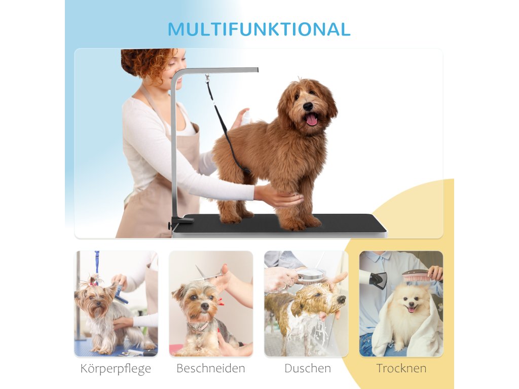 - Bezpečný a stabilní: Tento groomingový stůl je vybaven protiskluzovým, voděodolným gumovým povrchem a hranami z hliníkové slitiny a poskytuje stabilní a bezpečný povrch pro všechny činnosti spojené s péčí o psa